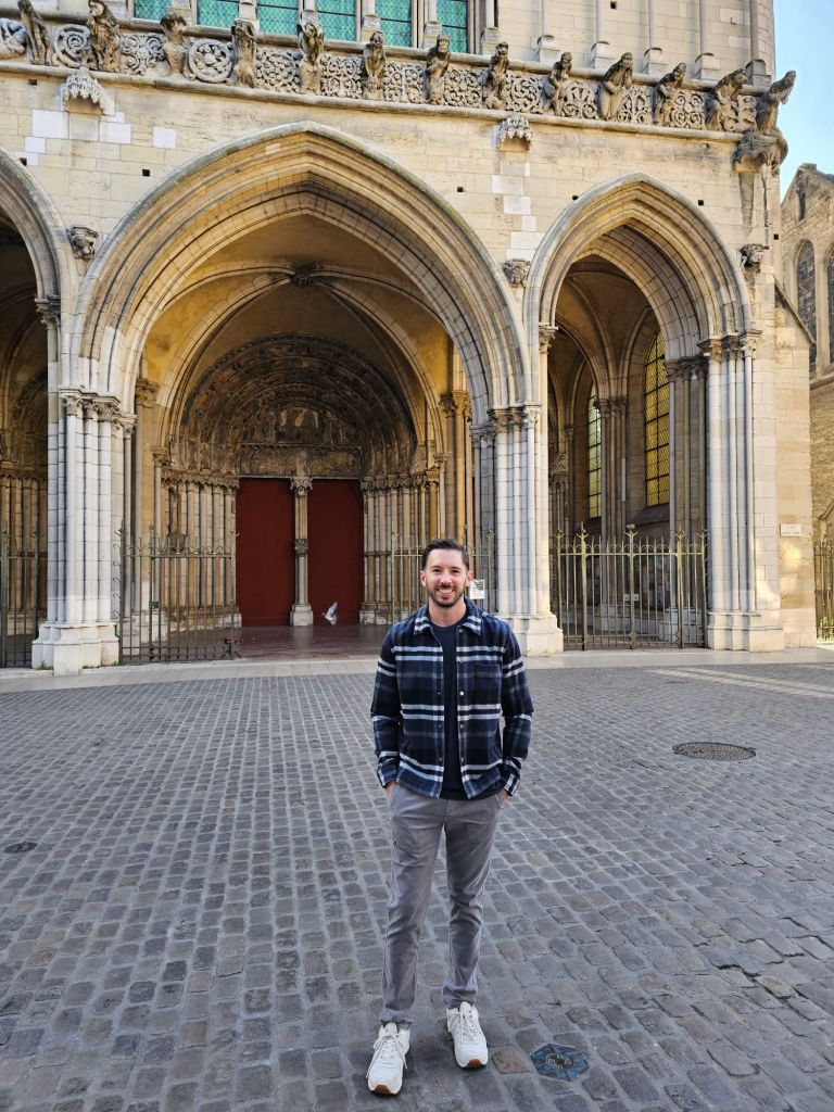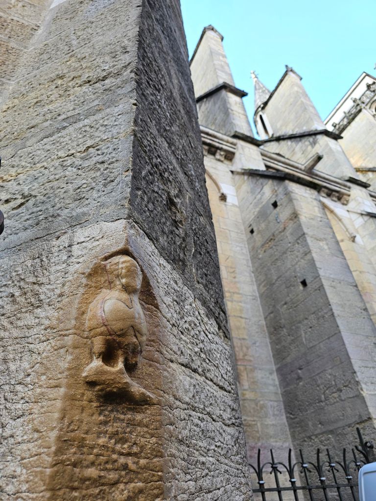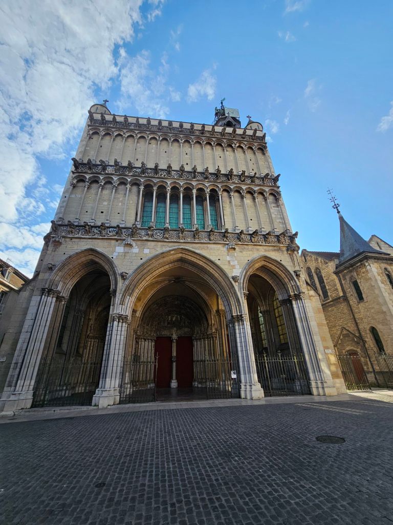 After a walk through the market, it was time for our first historic stop. After a very quick walk (Dijon is a small city), we arrived at the Church of Notre-Dame of Dijon. The church is stunning. Built in the 13th century, it was restored to its current appearance. Previously in the 12th century, it was a much simpler cathedral.